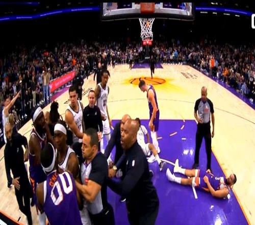 最终判罚:杰明、小波特、曼恩、奥尼尔、阿伦,这五人每人一个技犯!技犯是三比二,所以其中四个罚球抵消,太阳罚一球!罚完之后双方再争球。