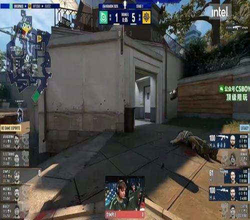 手枪局Legacy三人前顶下水道,BC在A区打出突破但是没人看银行,n1ssim双杀之后1V1被s1mple的P250逮捕!1-0!