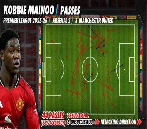 在阿莫林麾下坐冷板凳的科比·梅诺,同样得以发挥所长,在空当中进行短传,把球送到布鲁诺·费尔南德斯、多古、姆贝莫和阿马德等人脚下。