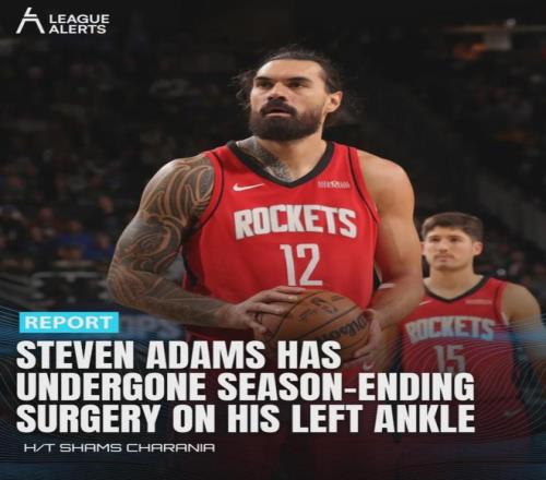 失去了亚当斯的火箭实在支棱不起来,碰见顶级内线就容易支离破碎,前者已经接受左脚踝手术赛季报销。