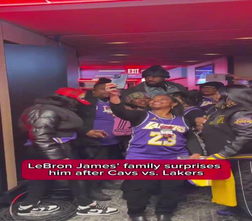 赛后,詹姆斯的一些家人们身穿他的球衣现身支援,詹姆斯送上合影和签名。