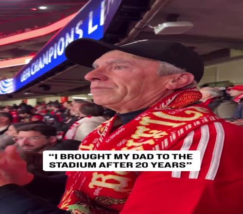 欧冠联赛阶段第八轮,Raul Curvelo时隔20年带着父亲现场观看本菲卡的比赛。见证主队读秒破门进欧冠附加赛,这位父亲也是忍不住热泪盈眶。